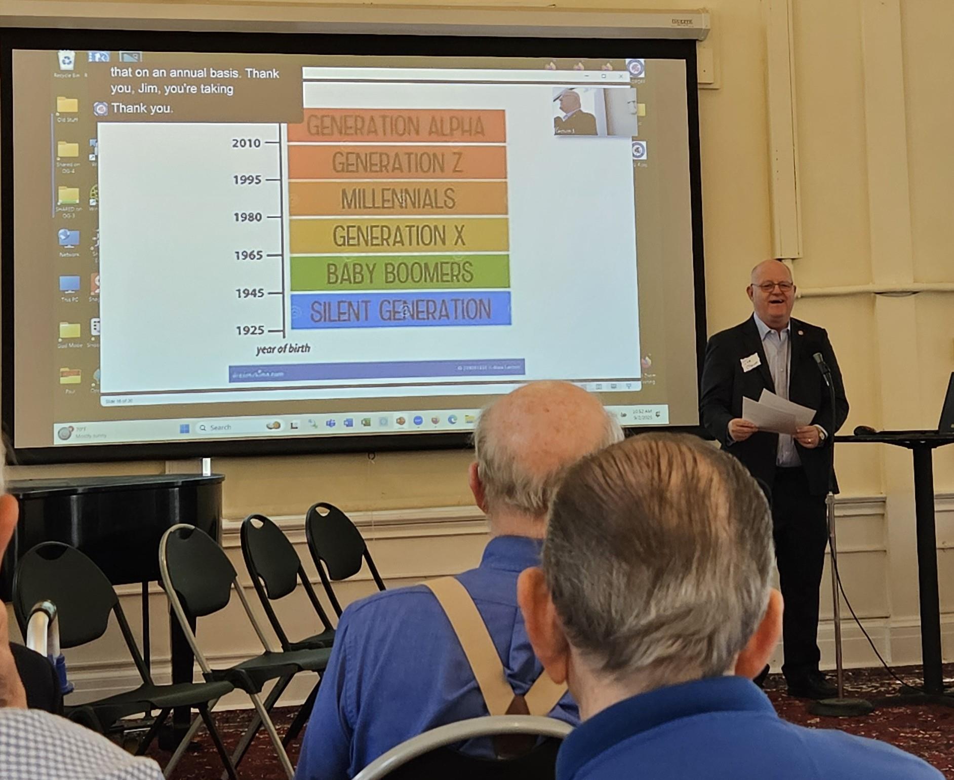 Today’s speaker was Donald Peck. Don is the CEO of The Clausen Company, a leading manufacturer of automotive refinishing products for the automotive aftermarket, as well as a historian. He is a direct descendant of six signers of the Mayflower Compact. Active memberships include The Society of Mayflower Descendants in the State of New Jersey and several state and national historical organizations. He has deep roots in New Jersey.
