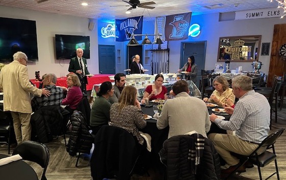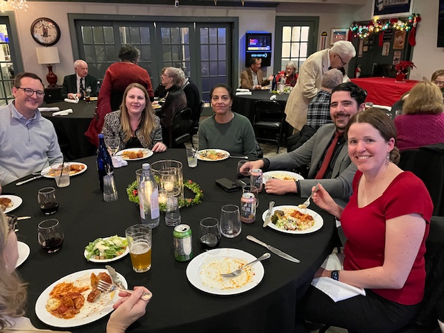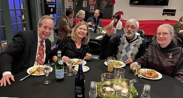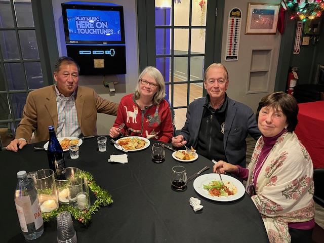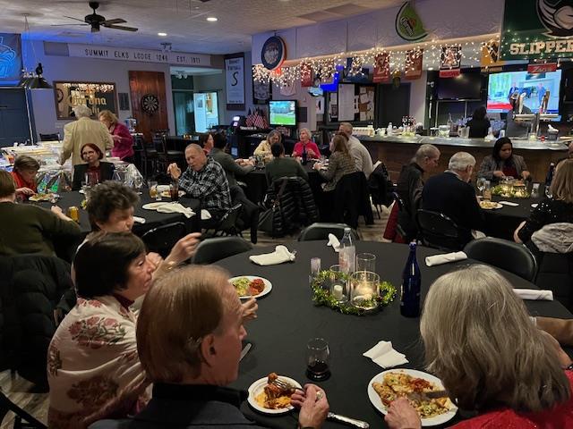 There were about thirty Rotarians and guests. As in the past there was plenty of great food and drinks (the Elks has a nice bar) and lots of good conversation, good cheer and the usual Rotarian bonhomie. President David Dietze acted as MC with an assist from Susan Haig in a review of the year, which was a good one for the Rotary as we have lots of new members and are looking at several new service initiatives in 2026.